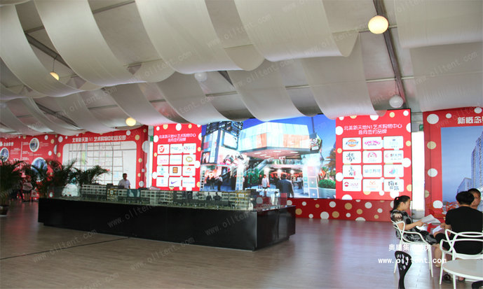 奧騰大型篷房可滿足于各種不同的活動需要。超大凈跨度:10-60米,模塊化結構,搭建工期短,易于組裝和拆卸。大型篷房外形優雅、搭建靈活、安全環保、防雨、防曬、防霉、阻燃,可抗8-10級大風,廣泛應用于各類戶外臨時性活動,作為臨時或長期建筑都是很好的選擇。
